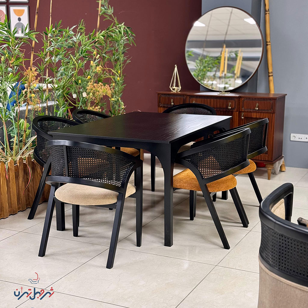 - ابعاد متناسب: تناسب میز و صندلی با فضای منزل؛ عبور و مرور راحت و فاصله استاندارد بین صندلیها.